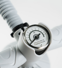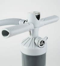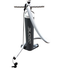 Dual action kite pump from Ozone with integrated PSI meter in the handle. Pump your kite or wing to perfection. Comes with hose adapters for the Ozone Boston inflate/deflate and standard 9mm valves. 2.9L capacity